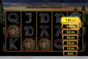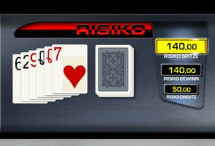 - Risikofunktion: Natürlich gibt es auch bei Online Slots von Merkur die beliebte Risikoleiter (siehe Bild oben), um Rundengewinne zu vervielfältigen. Der Maximalgewinn liegt hier bei 140 Euro, sodass selbst kleine Gewinne am Ende der Leiter ordentlich zu Buche schlagen.
