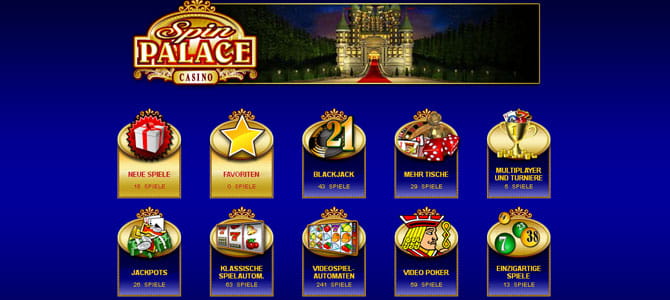Das Spin Palace Casino bietet seinen Kunden nach der Registrierung eine der größten Casino Spiel-Auswahlen, die ein Spieler im Internet finden kann. Wer auf der Suche nach Novoline oder Merkur Spielen ist, wird hier allerdings nicht fündig – dafür gibt es mehr als 450 andere Titel und eine Auszahlungsquote von 97 Prozent. Seit der Gründung 2001 bietet sich das Spin Palace Casino den Spielern aus aller Welt als Alternative zu klassischen Spielhallen an.