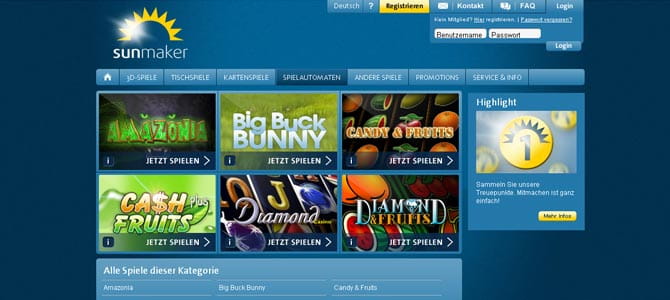 Wäre man damals immer noch Kombi-Anbieter, wäre die Kooperation mit Merkur im Jahre 2011 wahrscheinlich nicht zustande gekommen. Insgesamt bietet Sunmaker rund 60 Casinospiele – andere bieten hier zwar deutlich mehr, allerdings sind die Merkur-Automaten ein echtes Highlight. Die detailgenaue Umsetzung, die tollen Animationen und die Full HD-Auflösung machen einiges wett. Die Standard-Spiele, wie Blackjack oder Baccarat, findet der Spieler hier natürlich auch.